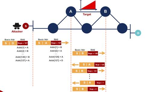 “Routing Header” başlığı paketin hedeflenen alıcıya teslim edilmesi için gideceği yol üzerinde ziyaret edilecek bir veya birkaç IP’ye ilişkin bilgi içerir. Bu başlığın farklı tipleri mevcuttur. Her ne kadar RFC 5095 ile kullanımı ortadan kaldırılmış olsa da “Type 0” kullanılması durumunda “amplification” saldırıları gerçekleştirilebilir.